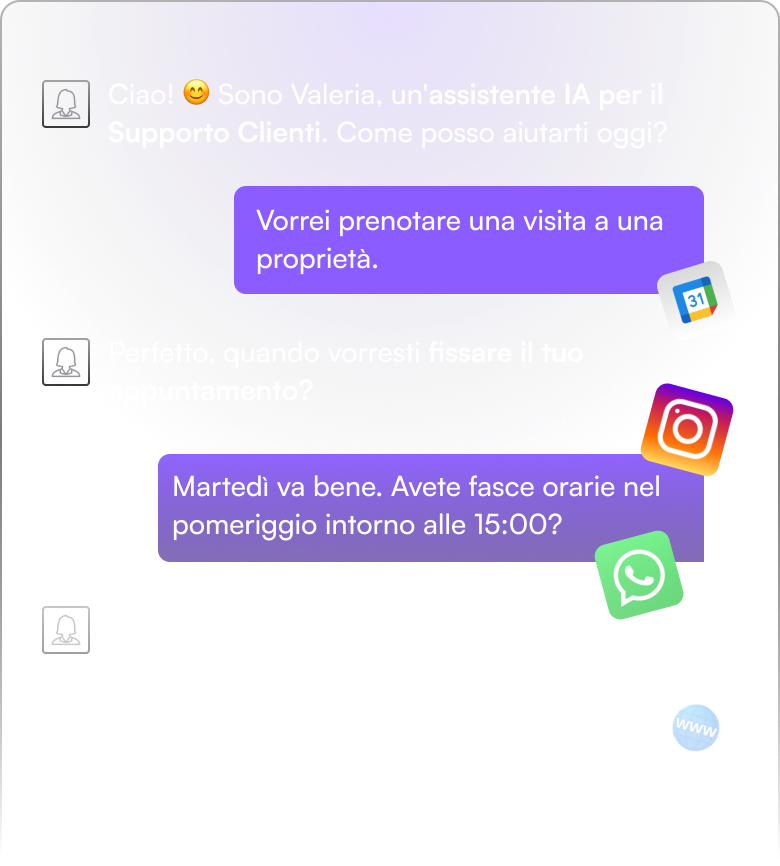 I nostri agenti sono pensati per adattarsi a qualsiasi settore: e-commerce, servizi, hospitality, consulenza, sanità, formazione e molto altro.